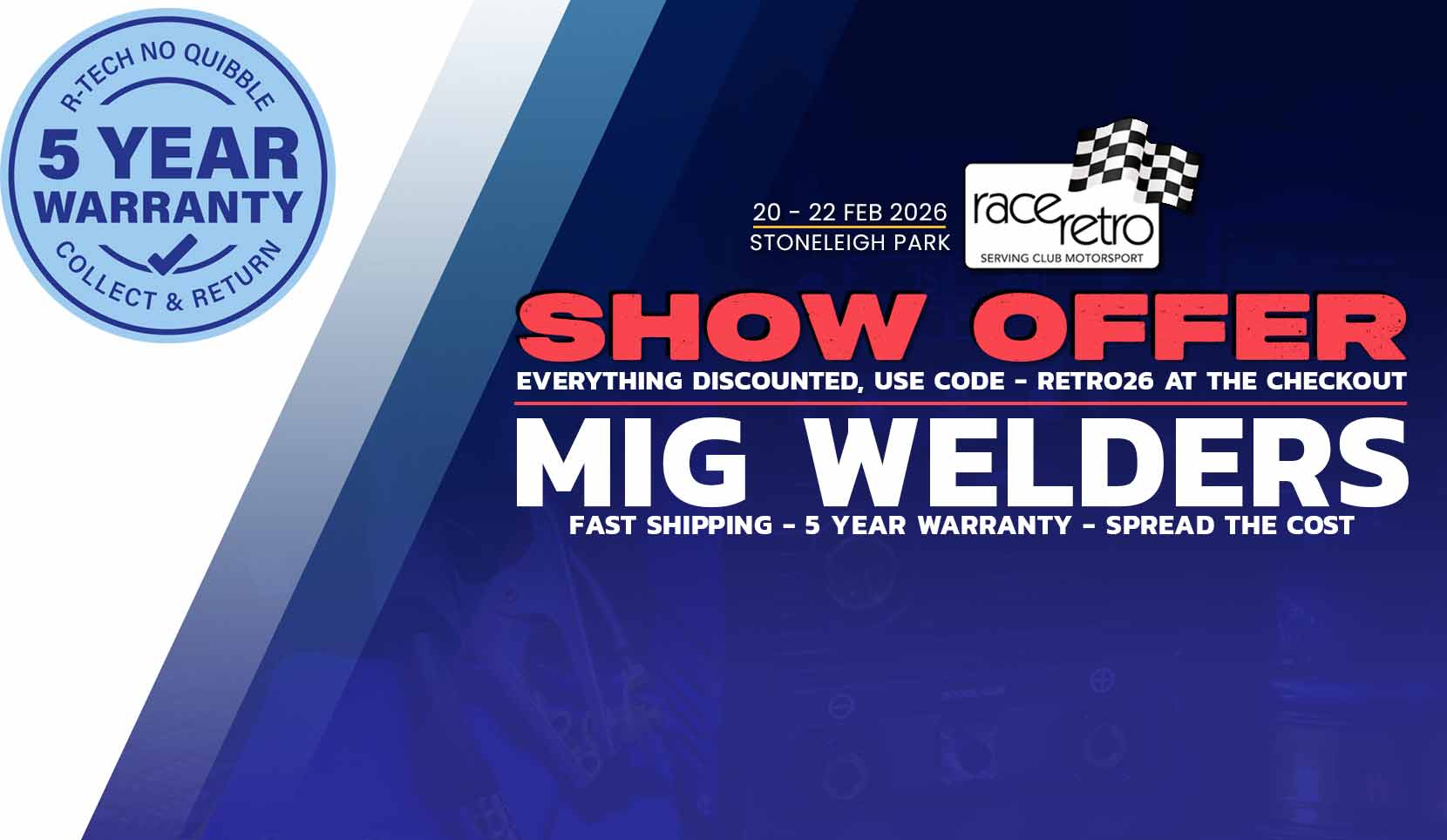 With MIG welders from 180 amp to 450 amp models we have a welder to suit your needs. All R-Tech machines come with a 5 year no quibble collect & return warranty for total peace of mind. We also offer delivery on the UK mainland. Need help? Call for friendly expert advice on 01452 733933 or via website LiveChat.